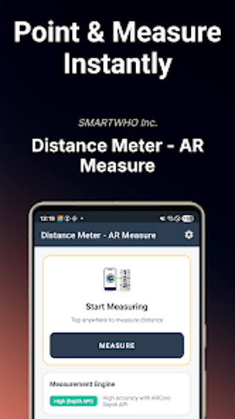 距离测量仪 - AR 测量是一个适用于 Android 的实用应用程序,提供通过增强现实测量现实世界距离的先进方法。利用 Google ARCore 技术,该应用程序会根据设备能力自动选择最佳测量引擎,确保距离估算的精确性。用户可以从各种测量引擎层次中选择,包括具有 ToF/LiDAR 传感器的专业级精度或对于缺乏 AR 支持的设备的基本基于相机的估算。